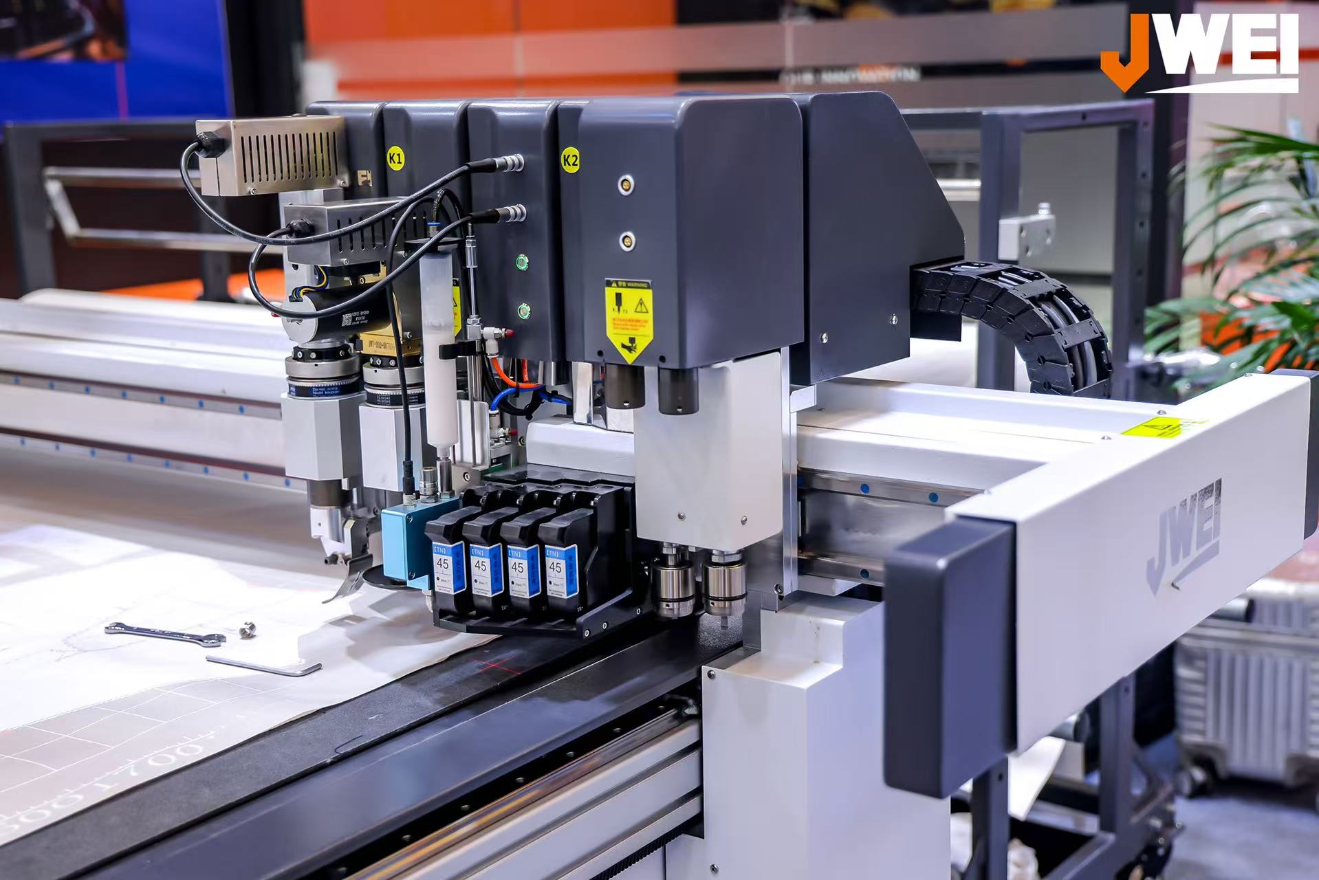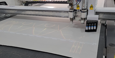 四墨盒噴墨模塊,相比於市麵常見品牌雙噴效率翻倍,噴墨線跡清晰,噴切刀線誤差可以控製在1mm之內,線跡具備粗細可調功能,加長切割文件可以進行跨版連裁。